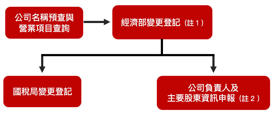 (變更事項不同,不一定所有流程均會經歷,請搭配「經濟部各項變更事項應備文件」確認所需申請流程)。