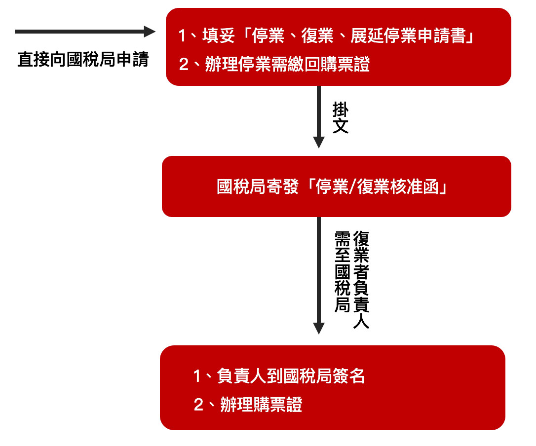 - 停業當期營業稅仍需於次期開始15日內完成申報。