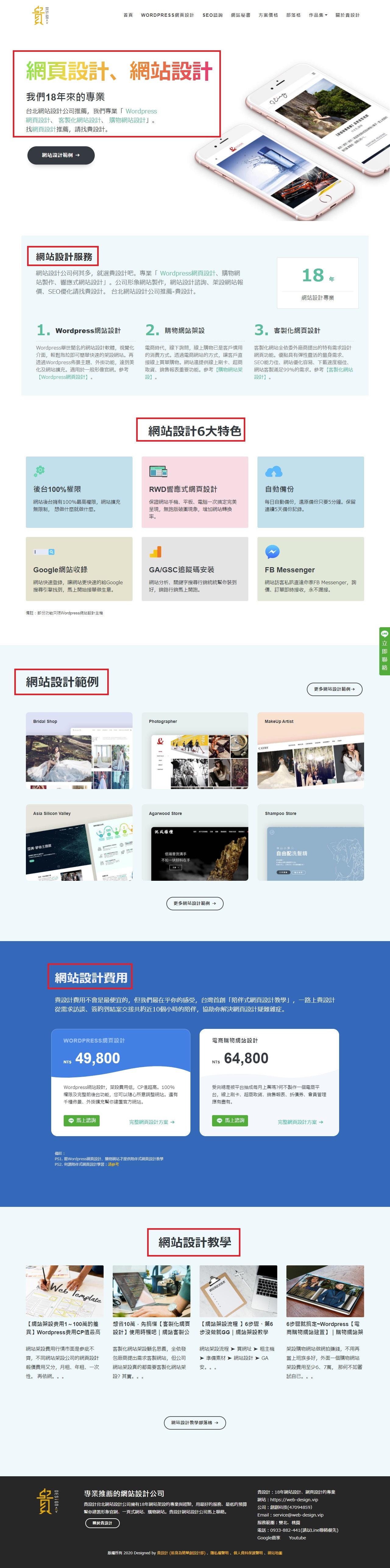 - 網站首頁與內頁架構:每頁架構就是每頁會分成那些區塊,例如貴設計就分了"主視覺圖文三大保證 、網站特色、響應式網頁設計範例、網站架設流程、網站建置費用"六大區塊,這就是所謂的架構。
